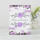 Convite de festa de aniversário de quarenta anos da mulher com elegantes rosas roxas lavanda sobre um fundo de rosas e nuvens.