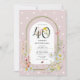 Convite de festas botânico de aniversário de 40 anos. Design apresenta um fundo cor-de-rosa empoeirado decorado em bolinhas brancas, um arco enquadrado adornada com primavera de aquarela/florais de verão e criaturas bonito da vida selvagem. O modelo editável é fácil de personalizar com seus próprios detalhes de evento.