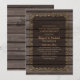 Convites de Festa de Aniversário de 40 Anos de Casamento Rústico em Madeira Country. Personalizados com os detalhes da sua celebração. Você pode alterá-lo para aniversários de 10, 25, 30, 50, 60 anos, etc. Apresenta uma bela tipografia em um fundo de madeira escura rústica e moldura ornamentada dourada com corações. Convites de aniversário de casamento country elegantes e modernos criados por superdazzle.com