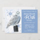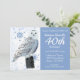 Coruja branca de neve num posto com flocos de neve azuis lindos. Personalize com as informações da sua aniversariante e os detalhes da sua festa.