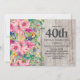 Cor de água, cor-de-rosa, azul e amarela, colorida com folhas verdes no convite de festas aniversário de 40 anos de fundo de madeira rústica de cinza para mulheres. Entre em contato conosco para obter ajuda sobre a personalização ou produtos correspondentes.