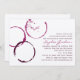 O convite de aniversário do tema "Vinho" apresenta manchas de anéis de vinho tinto, cheias de hambúrgueres, e texto de na moda, que podem ser personalizados para o seu evento especial.