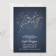Um convite de aniversário moderno, elegante, minimalista e chic com um tema de denim e diamantes. Ele apresenta um fundo denim, caligrafia personalizada com efeito de rochas (digital) para a palavra "quarenta" e tipografia em branco. Um design de "denim e diamantes" chico para uma mulher no seu quadragésimo aniversário!