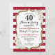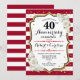 Convite de festa de aniversário de casamento de 40 anos em vermelho rubi. Convite elegante em vermelho, preto e branco com dourado brilhante falso. Apresenta listras elegantes, fonte script e rosas brancas. Perfeito para uma celebração de 40º aniversário.