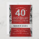 Convite de Aniversário de Casamento de 40 anos em vermelho rubi, preto e prata.