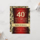Convite de Aniversário de Casamento de 40 anos em vermelho rubi, preto e dourado.