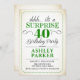Convite de festas de aniversário de 40 anos surpresa. Design de classe simples em branco, verde e preto. Apresenta uma fonte elegante de script. Celebração surpresa para homem ou mulher. Pode ser personalizado em qualquer idade!