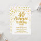 Convite de festas de aniversário de 40 anos surpresa. Design elegante em ouro branco e brilhante. Possui fonte de script na moda e confetti. Envie-me uma mensagem se precisar de idade personalizada.