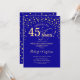 Convite de Celebração de Aniversário de 45 anos Safira Azul Dourado.