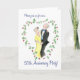 Um convite de aniversário de 50 anos leve e alegre com um casal mais velho dançando, de uma aquarela pintada à mão por Judy Adamson. O texto na frente é 'Por favor, junte-se a nós para nossa festa de aniversário de 50 anos!' e o interior está em branco para que você adicione os detalhes da celebração. Também disponível para aniversários de 30, 35, 40 e 45 anos mediante solicitação.