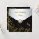Convite de festa de aniversário de cinquenta anos para mulher com sobreposição de flores pretas e douradas e acabamento em joia de pérola.