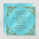 Convite para festa de aniversário de 50 anos de casamento azul turquesa dourado.