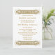 Convite de festa de aniversário de 50 anos de casamento com pergaminho dourado em cima e em baixo.