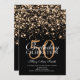 Modelo de convite de festa de aniversário de 50 anos elegante dourado glamour de meia-noite. Com luzes douradas e brilhos dourados.