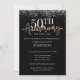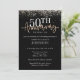 Celebre um marco dourado com este convite de aniversário de 50 anos elegante, apresentando acentos de brilho dourado cintilante em um fundo preto sofisticado. Fácil de personalizar para a sua celebração especial.