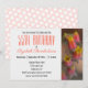 Este convite de festa de aniversário de 55 anos apresenta minúsculas flores de suculentas laranja com pontas douradas à direita. Todos os detalhes da festa estão na frente à esquerda em texto laranja escuro e preto. O verso é um simples desenho geométrico de diamante na cor dourada do texto da frente. Preencha os campos de texto do modelo abaixo com suas informações para personalizar.