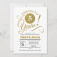 Design elegante em dourado brilhante falso e branco. Possui fonte de tipografia moderna em script. Brindamos a 5 anos! Pode ser personalizado para qualquer ano.