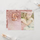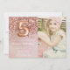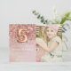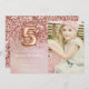 Convite de aniversário rosa de 5 de ouro elegante para uma menina de 5 anos com roteiro elegante escrevendo e balões de folha de papel divertida.