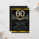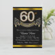 Convite de aniversário de 60 anos preto e dourado com números de diamante e faixa em um lindo fundo preto e dourado. Este convite de aniversário de 60 anos preto e dourado é facilmente personalizado para o seu evento. Você pode alterar a cor do fundo. Este design impressionante funciona bem para homem ou mulher. Este é um design impresso sem diamantes reais, prata, glitter, etc.