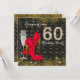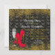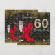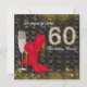 Convite de aniversário de 60 anos preto e dourado com taça de champanhe elegante e sapatos de salto alto estampados de leopardo vermelho em um belo fundo de cetim preto brilhante. Você pode personalizar facilmente este convite de aniversário de 60 anos preto e dourado para o seu evento, simplesmente adicionando os seus detalhes no estilo de letra e cor, e texto de sua escolha. Você também pode alterar a cor do fundo.