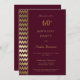 Um convite de aniversário de 60 anos moderno e sofisticado com listras chevron em burgundy e dourado.