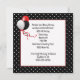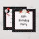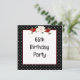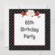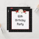 Moldura preta e branca com bolinhas, buquê floral e fita vermelha para convite de festa de aniversário de 65 anos. Todo o texto pode ser alterado.