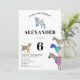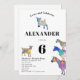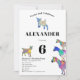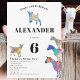 Uma coleção de cabras coloridas e divertidas em rosa vibrante, roxo, azul, laranja, amarelo e aqua. Um 6 convite de aniversário de animais de criação bonitinho com cabras e cabras bebês em cabras. Este convite de festas divertido é fácil de personalizar para criar um convite de festas único adequado para crianças e amantes adultos de cabras. Ilustrações originais de cabra psicodélica colorida da artista Catherine Sweetman