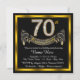 Convite de aniversário de 70 anos com números de diamante e faixa preta e dourada. Este convite de aniversário de 70 anos preto e dourado é facilmente personalizado para o seu evento. Este design impressionante funciona bem para homem ou mulher.