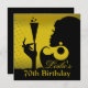 Convite de 'Festa de Aniversário' sofisticado e glamoroso para o aniversário de 70 anos ou qualquer outra data comemorativa. Adesivos, envelopes, enfeites de bolo e brindes de ímã combinando também estão disponíveis. Se você precisar de ajuda para personalizar este convite ou quiser outros produtos com esta arte, entre em contato com o designer em: cheryl@cheryldanielsart.com. 'Festa de Aniversário' por Cheryl Daniels © 2012.