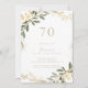 Este convite de aniversário de 70 de queda de ouro geométrico é perfeito para uma festa de aniversário moderna. A design apresenta uma bela estrutura geométrica dourada com folhas verdes elegantes.