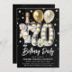 Celebre em estilo com este convite de aniversário de 70 para adultos rústico. Design apresenta um chalkboard blackground, lâmpada número setenta, balões de ouro, champanhe, florais e confete. O modelo editável é fácil de personalizar usando o modelo fornecido.