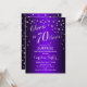 Convite de aniversário Elegante 70 surpreendido com prata brilhante e roxo. Possui fonte de script e confetti. Saúde para 70 anos! Me mande mensagem se precisar de uma idade personalizada.