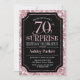 Convite à Celebração de Aniversário de 70 Surpresa. Design elegante em preto e brilhante padrão de ouro rosa. Apresenta uma fonte elegante de script. Envie-me uma mensagem se precisar de mais personalização.