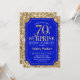 Convite à Celebração de Aniversário de 70 Surpresa. Design elegante em azul real e padrão de ouro brilhante. Apresenta uma fonte elegante de script. Envie-me uma mensagem se precisar de mais personalização.