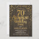 Convite de aniversário de 70 surpresa. Design elegante com padrão de madeira marrom escura e ouro brilhante falso. Possui fonte de script na moda e confetti. Envie-me uma mensagem se precisar de idade personalizada.