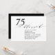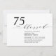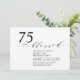 Celebre seu dia especial com este convite de festa de aniversário moderno. Este design apresenta um "75 anos Abencoado" em letra cursiva estilosa com um layout limpo em uma combinação de cores preto e branco. Você pode personalizar o texto para qualquer idade ou evento. Mais designs e suprimentos para festas estão disponíveis na minha loja BaraBomDesign.