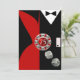 Um sofisticado casal art déco vestido com trajes de gala - ela com um vestido prateado cintilante e ele elegante num smoking preto. O centro da peça é uma ficha de cassino que contém números de aniversário de 75 anos e dados prateados caindo. Este convite versátil e moderno é perfeito para qualquer ocasião especial - festas de aposentadoria, aniversários marcantes, festas de coquetel e jantar, jantares de ensaio, recepções de casamento, aniversários de casamento, eventos semi-formais e formais ou festas de feriados. Fácil de personalizar, use o botão "Personalizar" acima para adicionar seu próprio texto. Adesivos de favor também disponíveis. Para perguntas ou pedidos especiais, por favor entre em contato com o designer em cheryl@cheryldanielsart.com. Se este convite não é exatamente o que você está procurando, todos os meus produtos podem ser personalizados para atender às suas necessidades específicas. Convite "Festa de Anivers