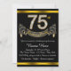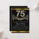 Convite Festa de Aniversário de 75 anos Preto e Dourado