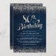Comemore este aniversário de 80 de marco no estilo. Estes convites de aniversário chic denim e diamantes apresentam as palavras "80 Birthday" em um tipo divertido de script com pequenas joias confetti no topo e no fundo em um fundo denim. Design pelo The Spotted Olive™.