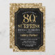 Convite Festa de aniversário de 80 surpresa - preto Dourad
