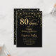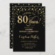 Convite Festa de aniversário de 80 surpresa - preto Dourad