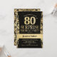 Convite Festa de aniversário de 80 surpresa - preto Dourad