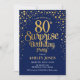 Convite de aniversário de 80 surpresa. Design de Elegante no marinho e ouro brilhante falso. Possui fonte de script na moda e confetti. Envie-me uma mensagem se precisar de idade personalizada.