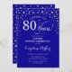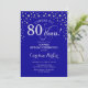 Convite de aniversário de 80 surpresa. Design elegante em azul real e prata brilhante falso. Apresenta a fonte do script e os diamantes confetti. Saúde para 80 anos! Envie-me uma mensagem se precisar de mais personalização.