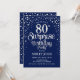 Convite de aniversário de 80 surpresa. Design elegante em azul marinho e prata brilhante fraca. Possui fonte de script na moda e confetti. Envie-me uma mensagem se precisar de idade personalizada.