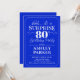 Convite de aniversário de 80 surpresa. Design de classe simples em azul e branco reais. Possui uma fonte elegante de script. Celebração surpresa para homem ou mulher. Pode ser personalizado em qualquer idade!