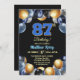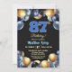 Convite Festa de Aniversário de 87 anos Azul Prata Dourado