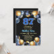 Um design moderno e elegante com o número 87 em azul com bordas douradas e balões com brilho prateado, azul e dourado. Personalize os detalhes para uma Celebração de Aniversário única e sofisticada.