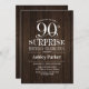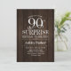 Convite à Celebração de Aniversário do 90 de Surpresa Russo. Design elegante com padrão de madeira marrom escura. Apresenta uma fonte elegante de script. Envie-me uma mensagem se precisar de mais personalização.