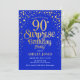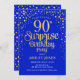 Convite de aniversário de 90 surpresa. Design elegante em azul real e ouro brilhante falso. Possui fonte de script na moda e confetti. Envie-me uma mensagem se precisar de idade personalizada.